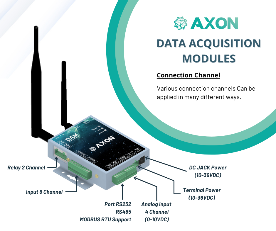 Data Acquisition Modules (DAM) เป็นโซลูชันที่คุ้มค่าสำหรับธุรกิจที่ต้องการยกระดับสู่ Industry 4.0 ด้วยการเชื่อมต่อเครื่องจักรและอุปกรณ์ต่างๆ เข้ากับระบบเครือข่าย เพื่อเพิ่มประสิทธิภาพการผลิต ลดต้นทุน และเพิ่มขีดความสามารถในการแข่งขันในยุคดิจิทัล