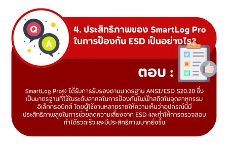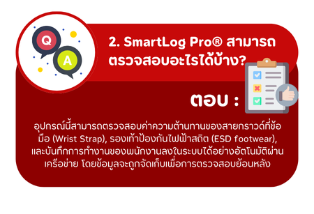 SmartLog Pro® โซลูชันการควบคุมและตรวจสอบการป้องกันไฟฟ้าสถิต (ESD) จาก Desco Industries เป็นที่ยอมรับอย่างกว้างขวางในอุตสาหกรรม ESD ระบบนี้ออกแบบมาเพื่อช่วยตรวจสอบและบันทึกข้อมูลการทำงานของพนักงานในสภาพแวดล้อมที่ต้องการการป้องกันไฟฟ้าสถิตอย่างมีประสิทธิภาพ บทความนี้รวบรวมคำถามและคำตอบจากประสบการณ์ของผู้ใช้งานจริงที่ใช้ SmartLog Pro® ในสถานที่ทำงานต่างๆ พร้อมแหล่งข้อมูลอ้างอิงเพื่อความน่าเชื่อถือ