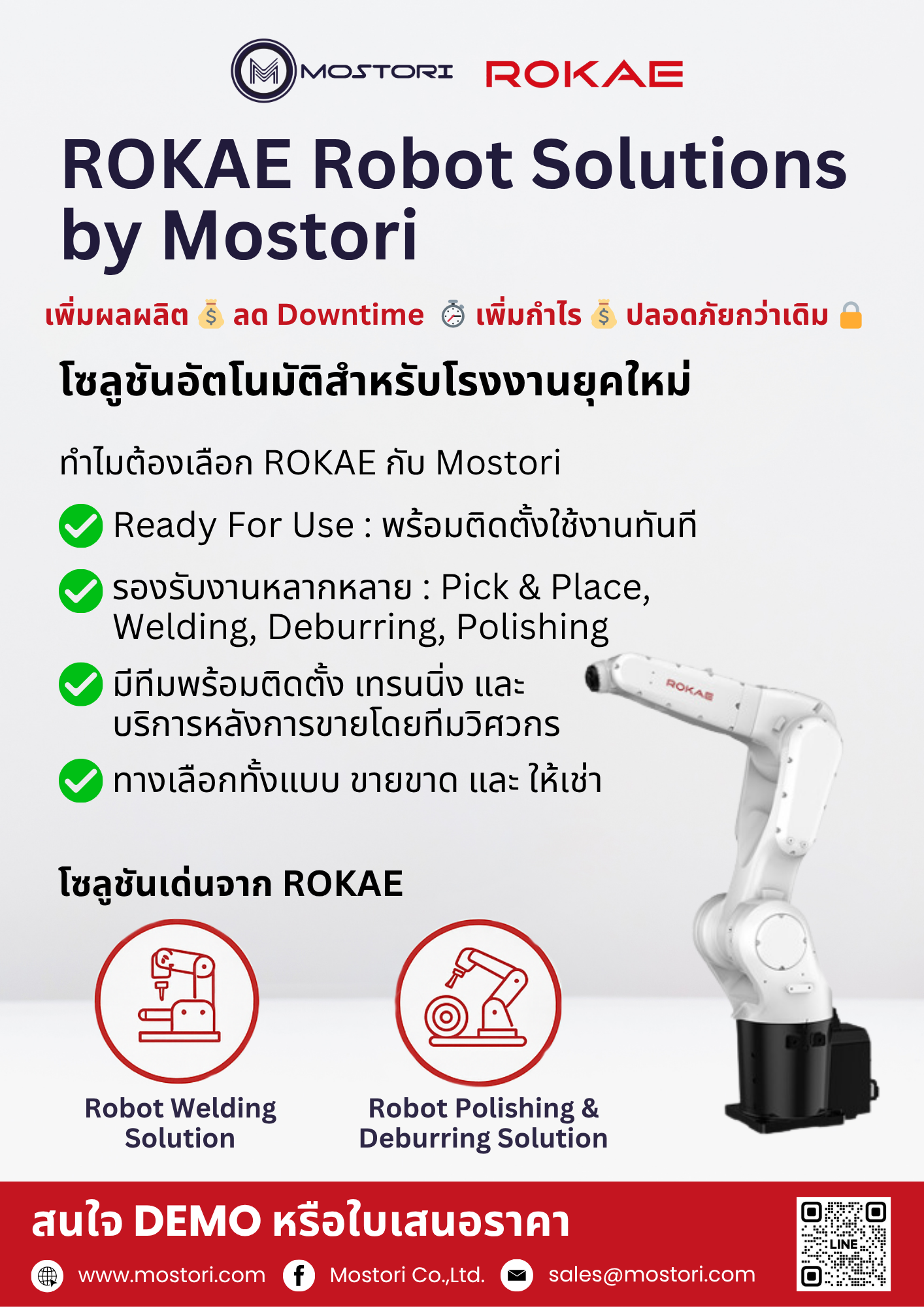 #ROKAE #บริการเช่าหุ่นยนต์ในโรงงาน #ประสิทธิภาพการผลิต #มอสโทริ #หุ่นยนต์อุตสาหกรรม #RokaeRobotics #Mostori #หุ่นยนต์อุตสาหกรรม #CollaborativeRobots #Robots #Industry #ลดต้นทุนการผลิต