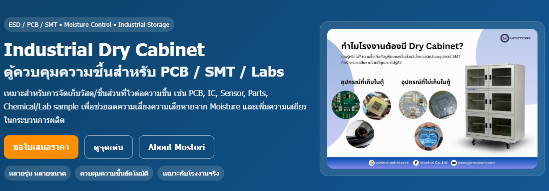 Dry Cabinet จึงไม่ได้เป็นแค่ตู้เก็บของ แต่เป็นอุปกรณ์ที่ช่วยควบคุมคุณภาพและลดความเสี่ยงในกระบวนการผลิต
