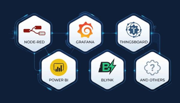 การแสดงผลข้อมูล IoT ผ่าน Dashboard ข้อมูลจากระบบ IoT จะถูกนำมาแสดงผลผ่าน Dashboard เพื่อให้ผู้บริหารหรือวิศวกรสามารถติดตามสถานะของระบบได้แบบ Real-time